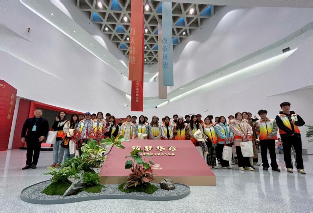 活动当天,各参会单位齐聚义乌江畔,我院志愿者有幸共同见证义乌美术馆开馆暨“铸梦华章——浙江主题创作美术作品展”开幕这一历史性的时刻,在服务中成长、在奉献中收获。