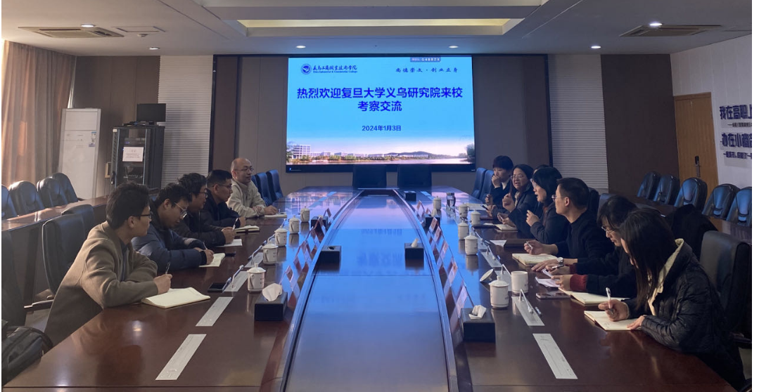 1月3日下午,复旦大学义乌研究院副院长陆起涌一行五人来校考察交流。副院长盛湘君出席并主持交流会,人文旅游学院、外语外贸学院、创意设计学院、创业学院、马克思主义学院负责人,科技处相关成员参会。