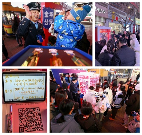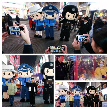 为庆祝第四个中国人民警察节,进一步提升警民文创作品的亲和力、渗透力和影响力,1月10日,在金华市区西市步行街商圈,由义乌市创意园(国家旅游商品研发中心)为金华市公安局设计的巨型动漫IP形象“诚诚”“美美”“威威”街头秀首次亮相婺城,与广大市民开展互动。活动现场,许多市民纷纷驻足观看并打卡,并对这些形象生动的动漫设计赞不绝口。