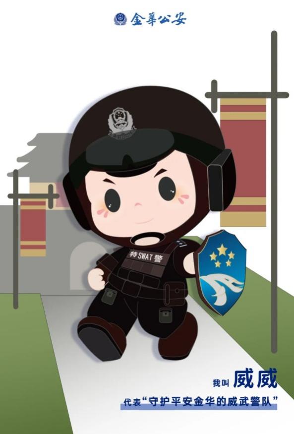 以特警为原型,手持“金华公安”标志盾牌,勇步向前,代表金华公安守护平安的勇毅担当。