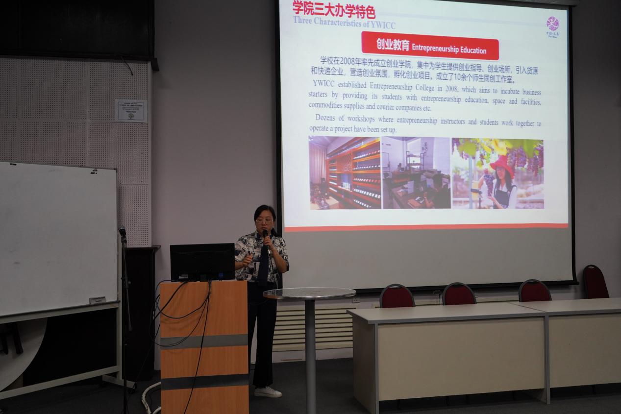 近日,国际处旷燕老师受邀于马来西亚拉曼理工大学开展了“繁荣的国际商贸名城——义乌和与城相融的大学——义乌工商职业技术学院”的主题讲座,拉曼理工大学近百名师生参加了此次讲座。