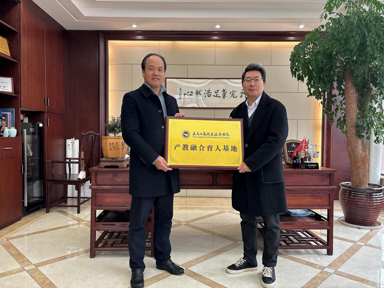 浙江天驰服饰有限公司是浙江省服装行业协会副会长、义乌市服装行业协会会长单位,为国家高新技术企业,产品远销欧美日韩市场,与外语外贸学院建立了紧密的合作关系。调研交流期间,浙江天驰服饰有限公司董事长金洪辉对目前企业外贸业务发展状况进行了介绍,双方就外贸类专业建设、校企合作人才培养等方面开展了深入的交流,双方期待在多领域开展合作。外语外贸学院“外贸跟单实务”课程团队教师与浙江天驰服饰有限公司董事长、总经理就课程建设特别是外贸跟单新技术、新方法进行了深入研讨。研讨结束后,校企合作处处长为浙江天驰服饰有限公司授予学校产教融合育人基地牌匾,外语外贸学院院长为浙江天驰服饰有限公司董事长颁发了产业导师证书。