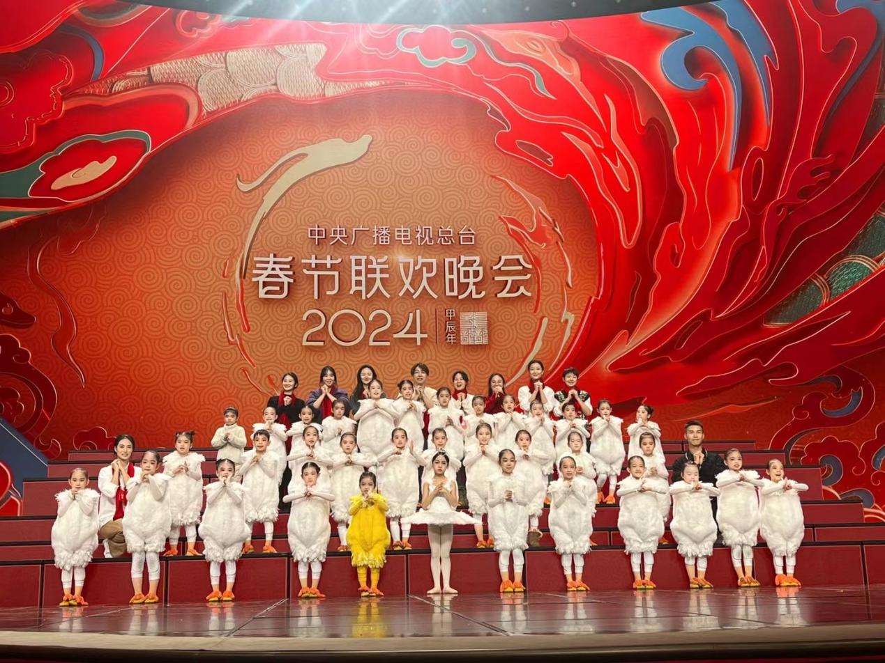 2月9日除夕夜,央视春晚舞台上,34只来自义乌的“萌小鹅”翩翩起舞,为全国观众带来舞蹈节目《鹅鹅鹅》,而把这群“萌小鹅”带上春晚的专业舞蹈老师是来自义乌工商职业技术学院2021级社会工作扩招班的潘艳阳同学。