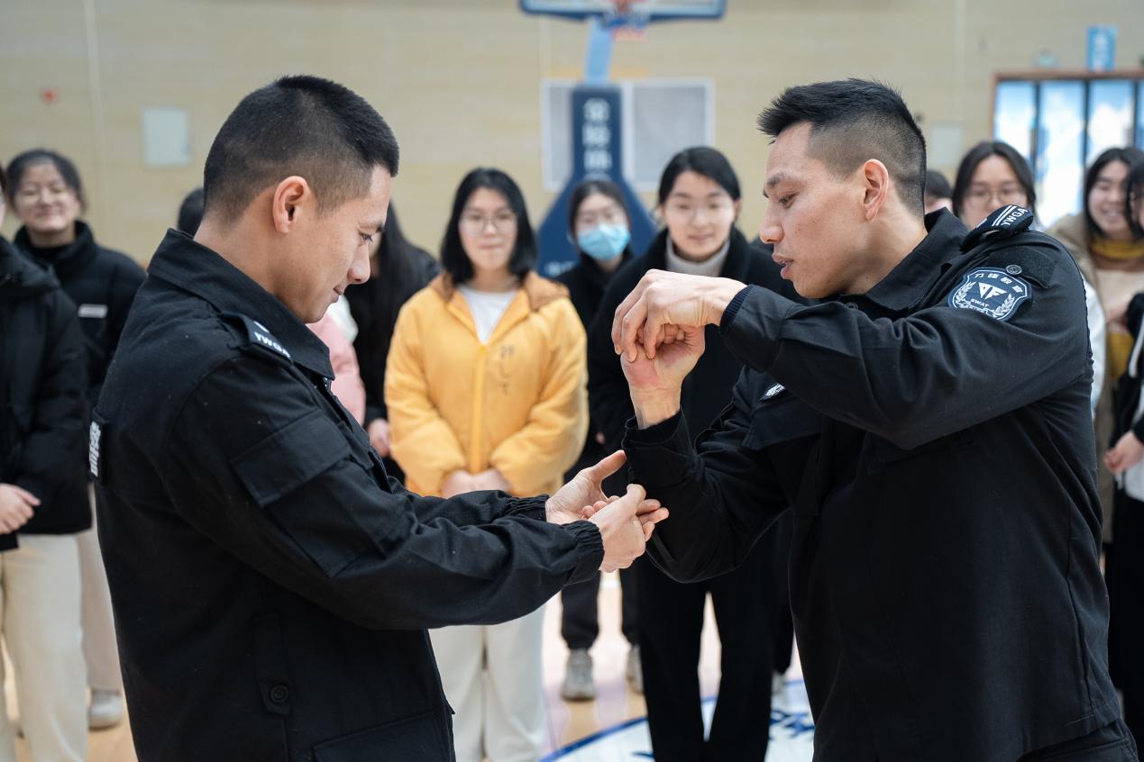 在培训过程中,特警教练宣清涛通过生动的理论讲解和精彩的实操演示,向学员们传授了一系列实用的防身技巧,包括如何察觉危险、避免危险以及在紧急情况下如何进行有效的自我防卫。学员们全神贯注地学习,并积极参与模拟演练,通过与教练的互动,熟练掌握了一些关键的防身术动作。