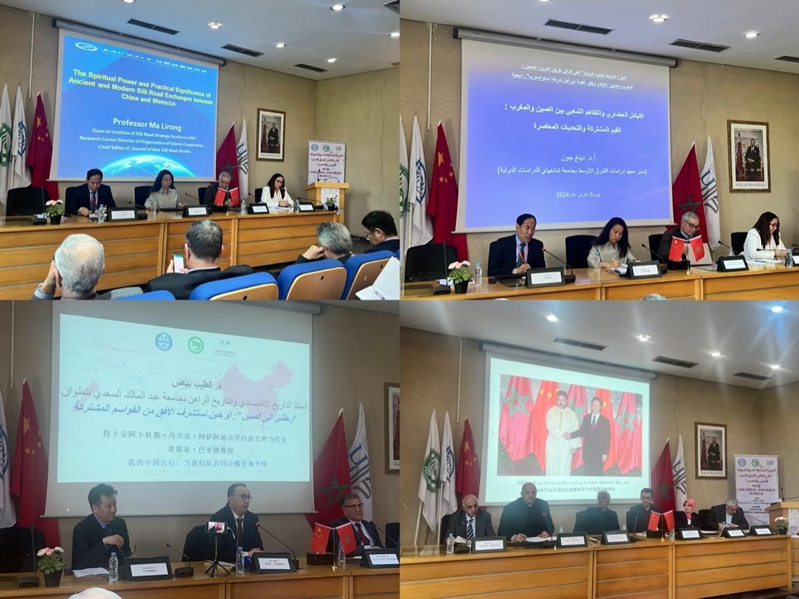 以“摩洛哥与中国:战略合作伙伴关系的创新和价值创造”为主题的研讨会分为三阶段进行,上海外国语大学丝路战略研究所所长马丽蓉教授、中东研究所所长丁俊教授、翻译研究院院长王有勇教授、哈桑二世大学法律、经济与社会科学院扎伊姆·福阿德教授、艾因谢高人文学院阿拉利·卡迪贾老师等十几位专家围绕“中国与摩洛哥古今丝路交往的精神动力与实践意义”“推动中国和摩洛哥文明交流与民心相通”“我们今天所需要的伊本•白图泰”等议题进行发言与热烈讨论;非洲中国合作与发展协会主席纳赛尔和摩洛哥中国友好协会主席哈利勒分别以中国在摩洛哥实施海水淡化、开展中国传统医学作为案例发言,引起与会者强烈共鸣。