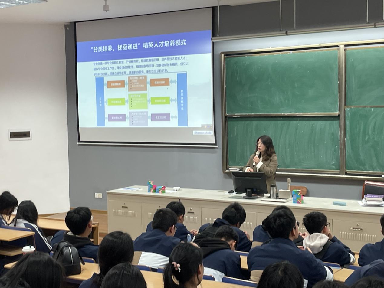 活动开始,大数据技术专业主任向到访的师生们详细介绍了学院的概况以及大数据技术专业的相关情况。着重讲解了专业分层分类人才培养模式,这种创新的教育方式旨在根据学生的兴趣和特长,提供个性化的教学计划和培养路径,确保每个学生都能在最适合自己的领域得到深入学习和实践的机会。