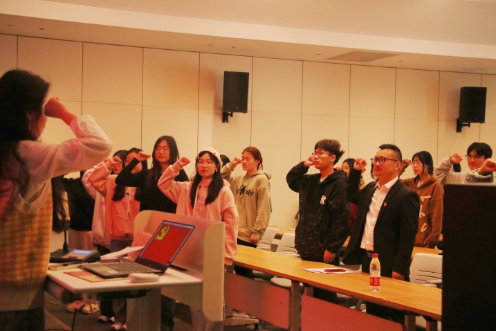 在两位同学的分享结束后,全体党员重温了入党誓词。