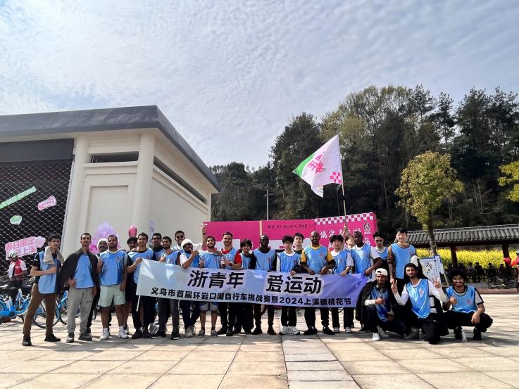 同一时间,备受瞩目的“情定岩口湖 相约桃花坞”义乌市首届环湖自行车挑战赛暨2024上溪桃花节隆重开幕。来自全国各地的青年骑行爱好者、数百名义乌市工商技术职业学院大学生、国际学生,在18公里的环湖“桃花赛道”上,舒展了一幅“人在花间游,车在画中行,风景扑面来”的运动生态画卷。骑行路线上溪镇串联起岩口湖、桃花坞、党建阵地、溪华棋乐小镇、岩口水上乐园、共富灶等青年研学红色文旅点位。