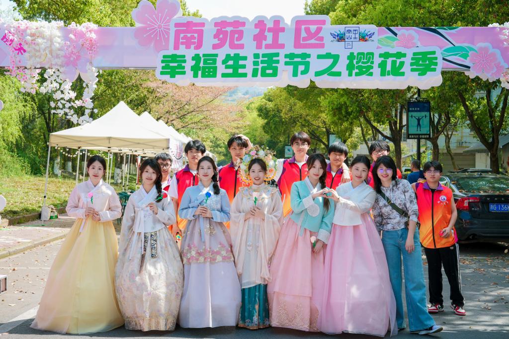 一年一度的樱花季来临,3月31日,一场别开生面的幸福生活节活动在江东街道南苑社区举办。此次活动由社区党委牵头,邀请义乌工商职院“校史育人·思成筑梦”志愿服务小分队共同参与,为居民们带来了一场视觉与心灵的盛宴。
