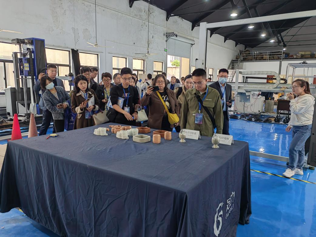 与会人员还参观了混凝土3D打印工厂,就3D打印装备、3D打印材料及施工工艺等问题进行充分交流。大家通过直击混凝土3D打印现场,深入了解了混凝土3D打印的原理,进一步了解了智能建造3D打印混凝土技术的应用范围和优势,深切感受了新技术在建筑行业的应用前景。