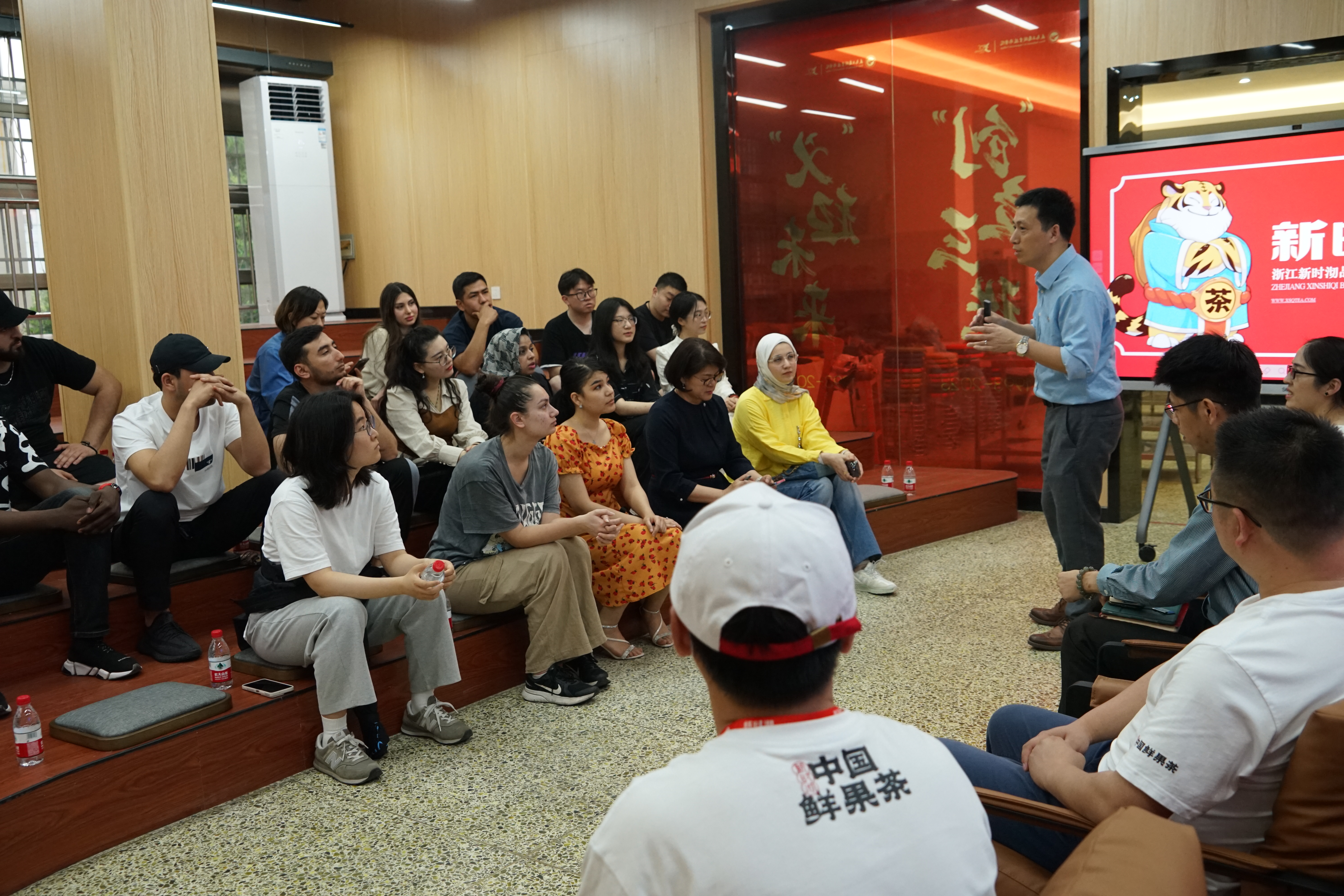4月16日下午,由国际教育学院与人文旅游学院共同举办的第六期国际创客面对面在国际创客园二楼报告厅举行。活动邀请了浙江新时沏品牌管理有限公司运营团队与中外青年创客面对面对话,讲述创始人的故事,回顾品牌发展历史,展望新时沏作为轻餐饮品牌的优秀出海代表与国际创客团队开展国际传播合作的美好前景。来自亚美尼亚、俄罗斯、土库曼斯坦等国的近三十名青年创客参加了交流活动。