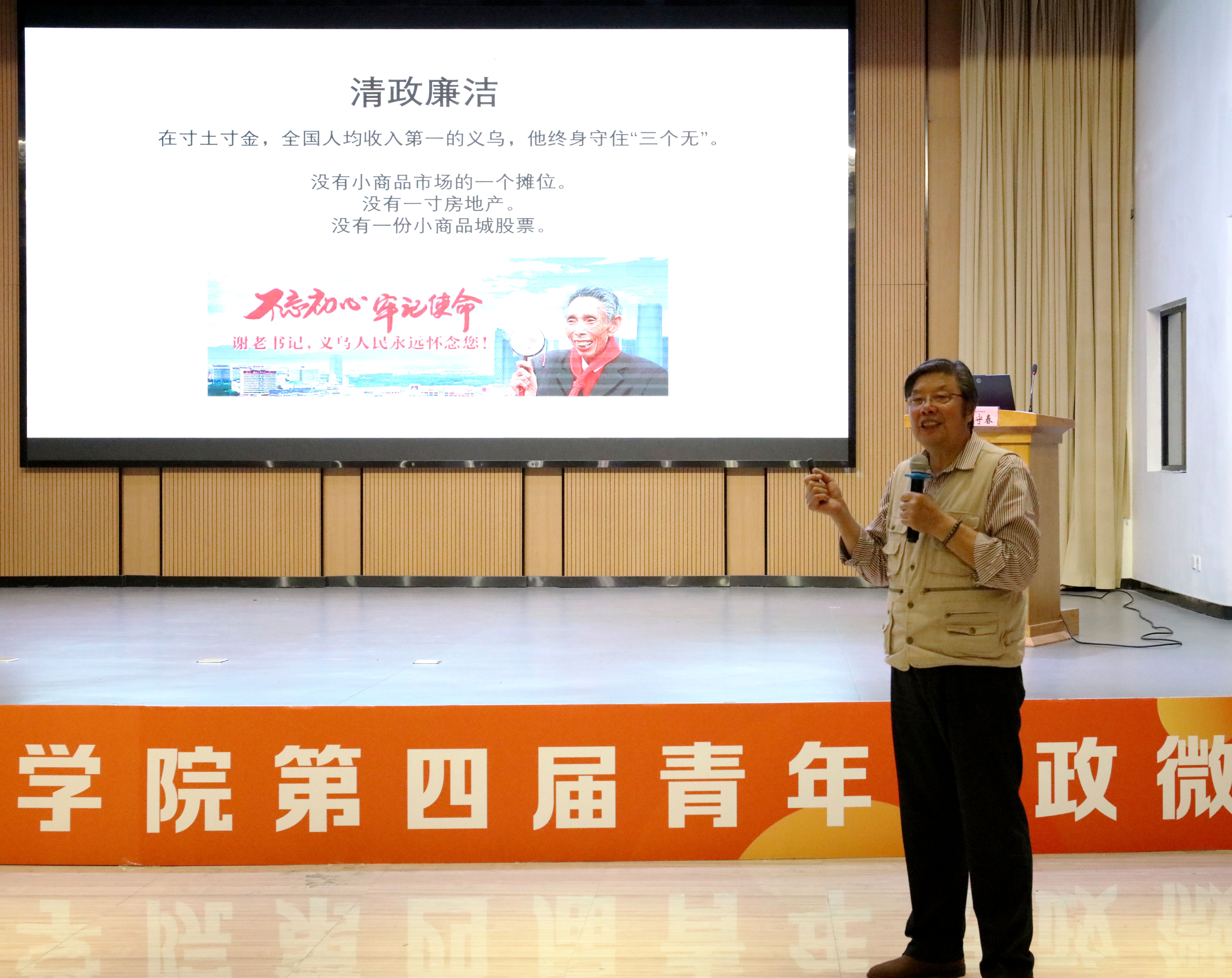 仪式上,杨守春为同学们作《铭记入党初心践行党员使命》的专题讲座。杨守春从“为什么入党?党员特质是什么?如何见贤思齐成为优秀共产党员?”三个维度,结合个人成长历程及革命先辈的故事为同学们作入党指导。他强调,加入共产党就是要为共产主义奋斗终身、就是要在组织的教育和培养下茁壮成长、就是要为党和人民做更多的事情。在现场,杨老师为大家讲述陈望道、冯雪峰、吴晗、谢高华等义乌本土红色人物故事,为同学们带来了一场丰富的精神盛宴。