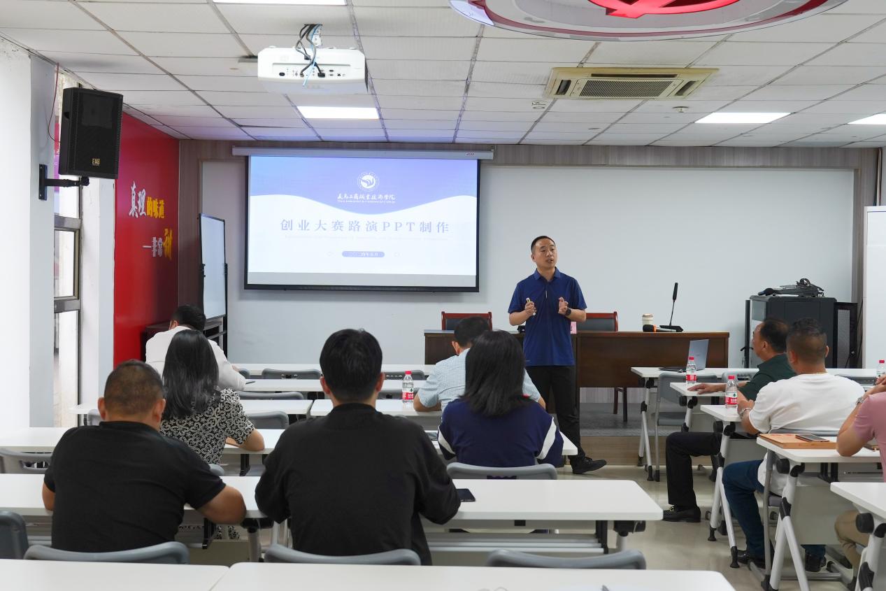 培训会上,我校创管处丁文剑老师围绕创业项目的选择、市场分析、团队建设、营销策略等方面进行了深入浅出的讲解。同时,还结合实际案例,让退役军人们更直观地了解创业过程中的挑战与机遇。丁老师还为退役军人们详细讲解了创新创业类大赛的PPT等材料制作的要点和方法,帮助退役军人们在各种创业比赛中实现突破。