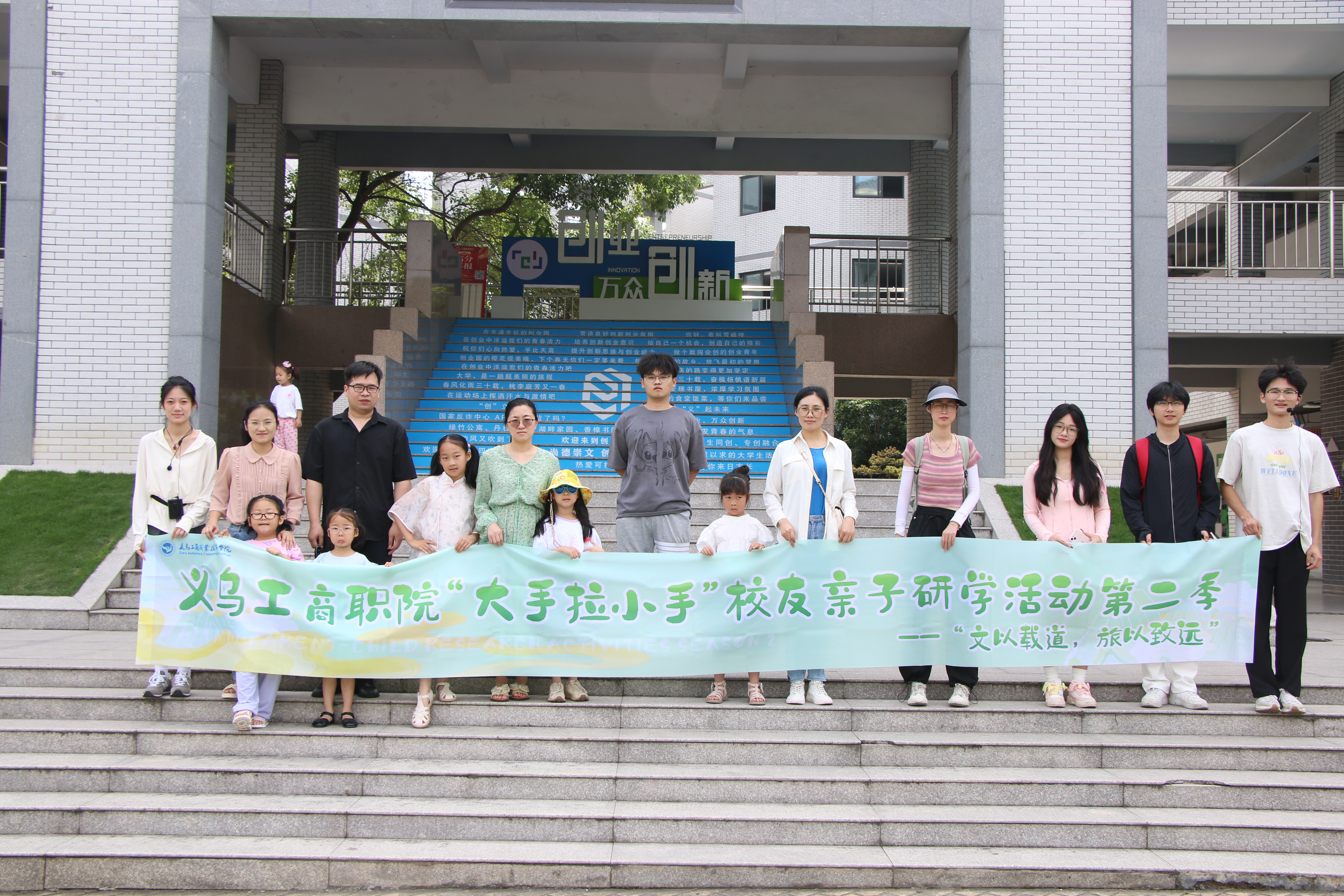 师生情满怀,喜迎校友归。在学校办学31周年之际,为进一步增强与广大校友的联系,搭建师生情感沟通的桥梁,提升校友的幸福指数,5月19日,人文旅游学院联合校友总会开展了“大手拉小手”校友亲子研学活动。 本次研学活动由人文旅游学院研学团队开发,包括湖畔诗词会、创意植物拓染、体验大学美食、鸡鸣阁登高望远等环节内容。上午,在校园导游的带领下,校友和孩子们来到群英湖畔的诗词会现场,小朋友们伴着手舞齐声诵读骆宾王的《咏鹅》、杨万里的《小池》等一首首脍炙人口的诗歌。诵读完诗词后,校友和孩子们一起完成了创意拼图,并在祝福牌上写下了对母校的祝福、对孩子的期待和对未来的展望。穿过群英湖,来到植物拓染的艺术课堂,研学老师详细介绍了植物拓染的原理、方法步骤以及注意事项,手把手带领校友和孩子们开始了拓染创作。大家通过敲拓的手法将植物叶片轮廓、花瓣颜色等拓印在白色帆布袋上,一幅幅栩栩如生的植物图案展示了亲子创作的无限想象力。下午,校友们在体验大学食堂美食后登上鸡鸣山的鸡鸣阁,俯瞰整个校园美景,追忆曾经的大学时光,感受母校的历史和文化。