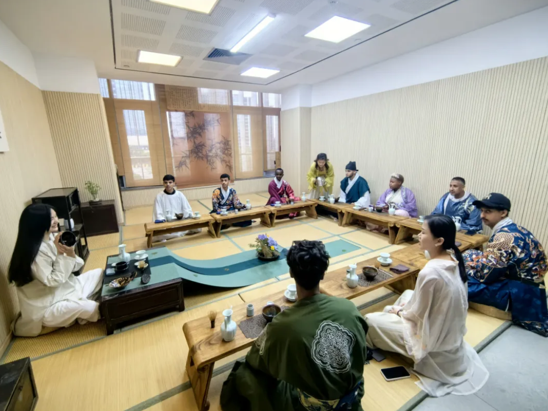 5月22日下午,义乌市文化馆联合澄心学堂举办了一场别开生面的“风雅宋人”文化体验活动,活动旨在弘扬和传播中国传统文化,让外国友人近距离感受宋代文人的风流雅致。我院来自俄罗斯、南非、菲律宾等国家的20余名国际学生参加了澄心学堂组织的文化课程,体验点茶、抚琴、燃香、国画,全身心感受宋韵之美。