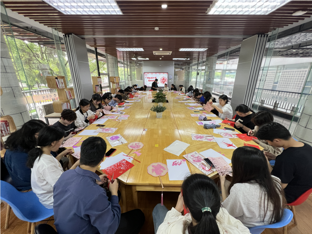 新绿成荫、榴花照眼,初夏的校园清新怡人。6月6日下午,图书馆举办了一场主题为“书香端午情 剪纸中国风”的非遗手作体验活动,全校100多位师生参与传统剪纸及香囊制作,共同迎接端午佳节的到来。