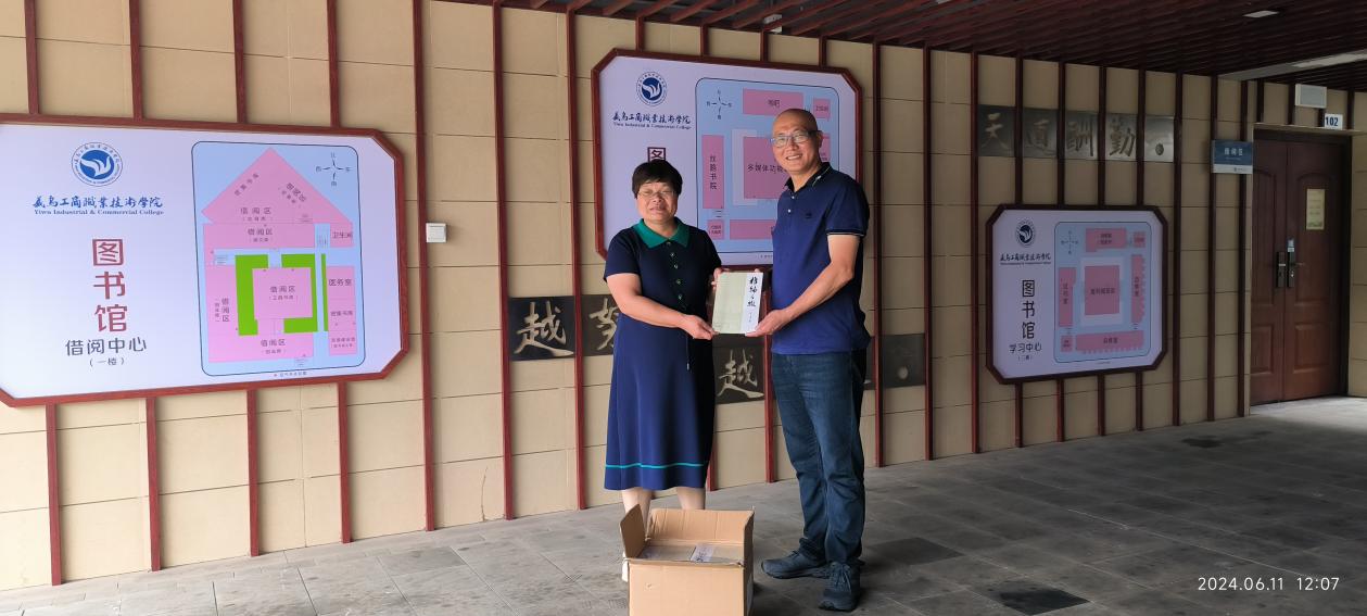 6月11日中午,我校优秀校友缪文中先生亲携其本人最新作品《椎轮之辙》40本捐赠给学校图书馆,图书馆负责人接收捐赠,并向其颁发捐赠证书。
