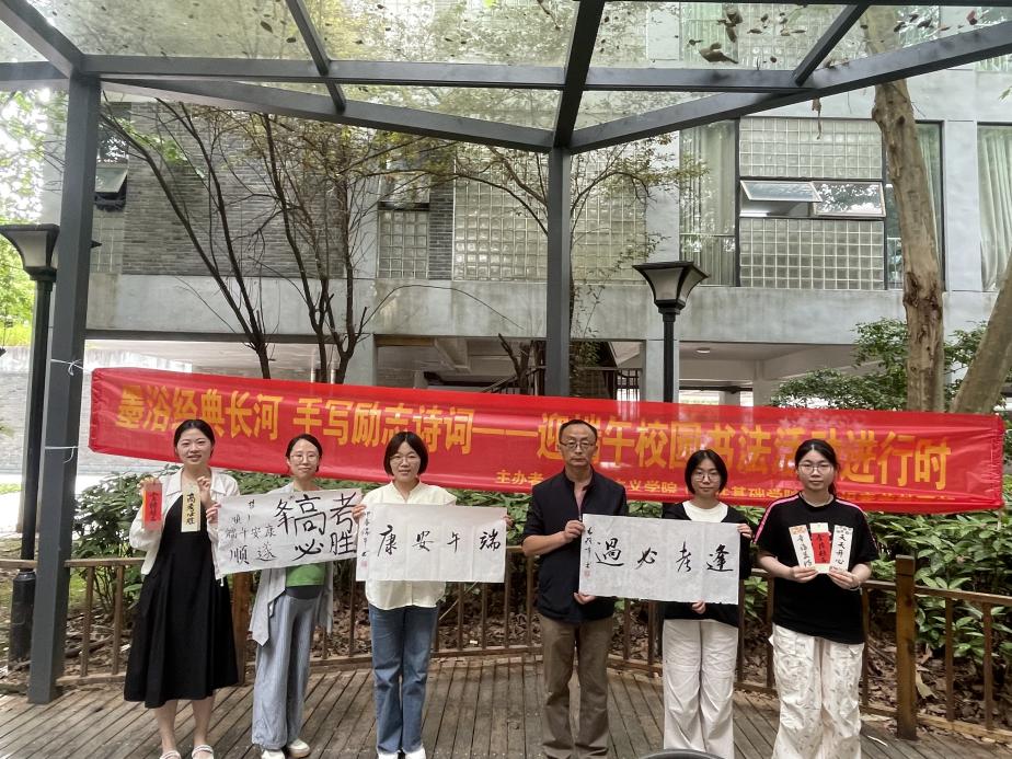 粽子飘香,诗意满满,2024年6月7日下午,在端午节即将来临之际,作为教师发展中心面向全校师生开设的一个培训项目,马克思主义学院通识素养教研部在望道行实践中心举办了一场别开生面的“迎端午励志诗词短语书法活动”。此次活动旨在弘扬传统文化,传承书法艺术,同时激励全校师生在节日氛围中感受励志诗词短语的正能量。