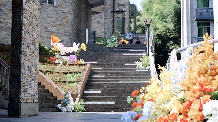 6月的阳光洒满了校园,也照亮了毕业生们前行的道路。在经济管理学院和长廊阶梯上,一条由五彩缤纷的花朵组成的四季花路格外引人注目。这条花路不仅象征着毕业生们即将开始的多彩人生,也寄托了学院对他们未来美好生活的祝愿。