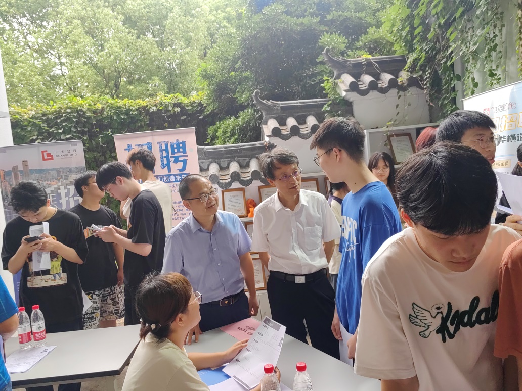 双选会期间,李昌祖先后来到广宏建设集团有限公司、浙江汉宇设计有限公司、春晗环境建设股份有限公司、浙江锦辉建设有限公司等招聘展位前,与企业招聘代表进行了亲切交流,了解用人单位招聘计划、岗位要求和现场招聘情况,积极向用人单位推介学生。