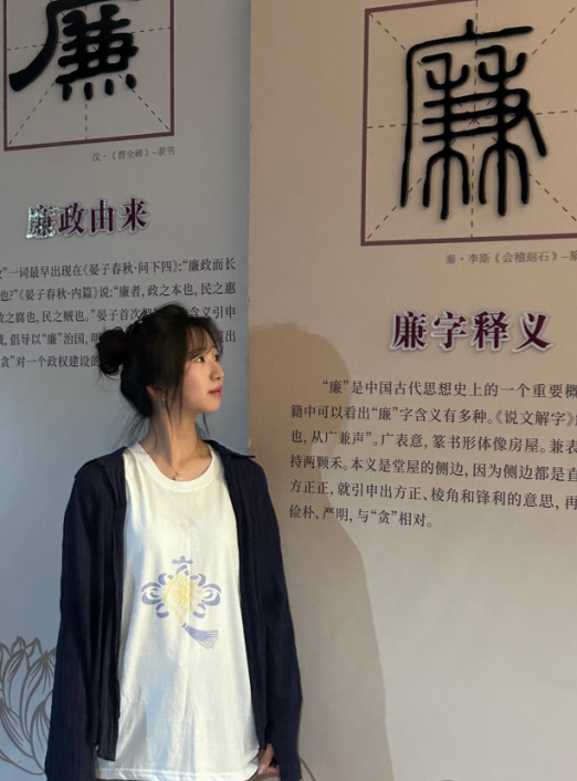 参赛选手先以“廉”元素为主题设计制作印刷图案,然后到学校丝网印刷实训室,在刘海燕教授的指导下,了解图案在T恤上印制原理和工艺,并亲手将“廉”图印于T恤上,最后参赛选手穿上印“廉”的T恤,与“廉”同行,拍照打卡。