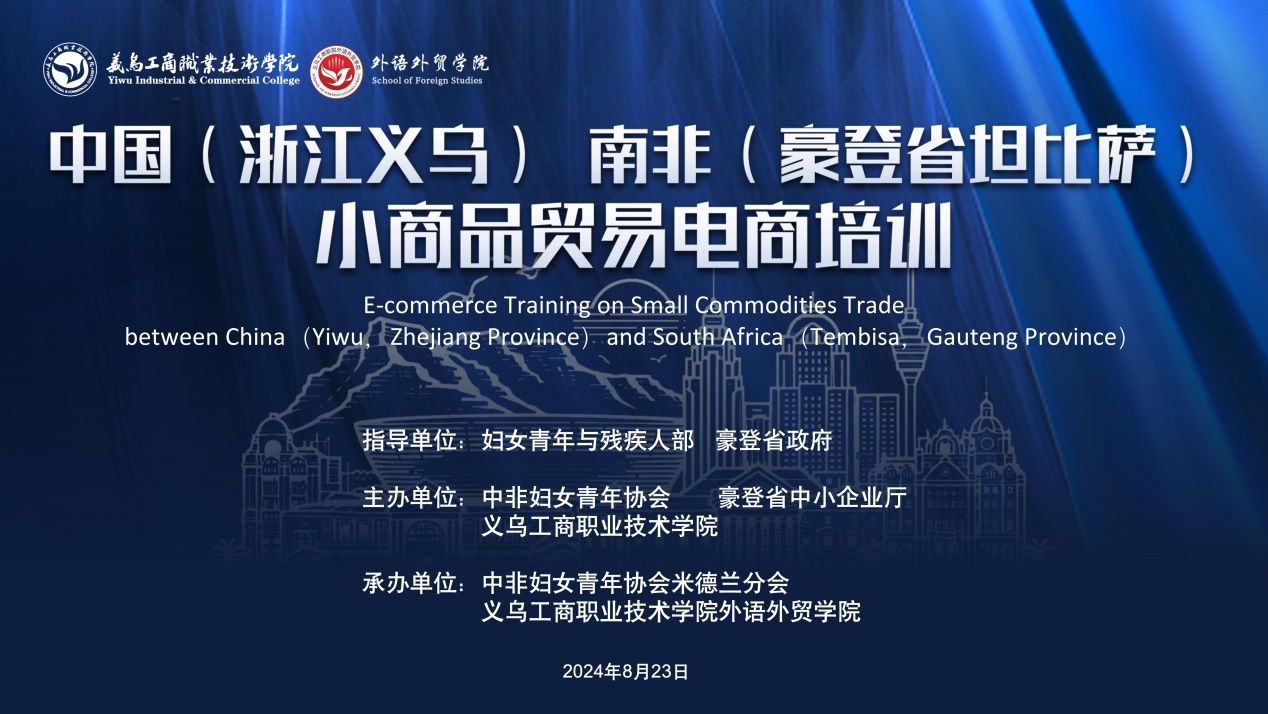 据悉,本次培训由南非妇女、青年与残疾人部及南非豪登省政府指导;中非妇女青年协会、南非豪登省中小企业厅、义乌工商职业技术学院主办;中非妇女青年协会米德兰分会、义乌工商职业技术学院承办。本次培训已是外语外贸学院在2024年开展的第二期南非电商培训。