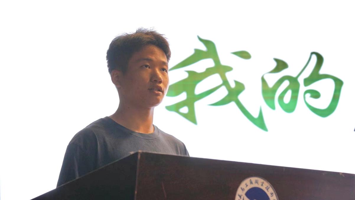 首位登台分享的嘉宾是西部计划志愿者、优秀校友王小明。他以“从军营到校园,不忘初心,砥砺前行”为主题,深情回顾了自己的从军经历与大学生活。王小明校友分享了军营中的汗水与荣耀,在志愿服务地区四川乐山轸溪镇乡村振兴办的故事,以及这些经历如何锻造了他坚韧不拔的意志和无私奉献的精神。他鼓励新生们:“大学是自由的海洋,也是自律的熔炉。请珍惜这段时光,努力学习,勇敢探索,让青春在奋斗中绽放光彩。”