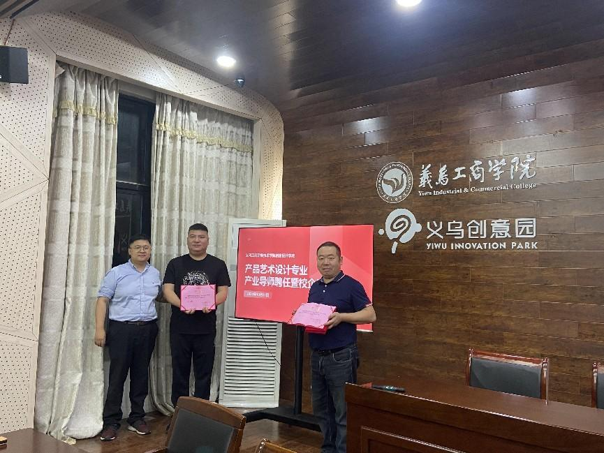 在聘任仪式上,学院党委负责人、产品艺术设计专业负责人及义乌市工艺美术行业协会会长向义乌市福韵科技有限公司总经理章思钢、义乌歌哥玛利文化传播有限公司总经理白富康颁发了产业导师、双创导师及外聘教师证书。两位导师在工艺品领域不仅拥有丰富的实战经验,而且对行业发展趋势具有深刻的洞察力。他们将通过定期的讲座、研讨会及个别指导,向学生传授最前沿的设计理念与实用技能,助力学生为未来职业生涯做好准备;同时,这两家企业也慷慨捐助了总计六万元的奖教助学金,以企业研发项目的形式,为本学期产品艺术设计专业的课程教学提供了实践课题。