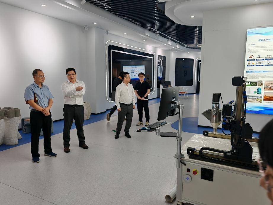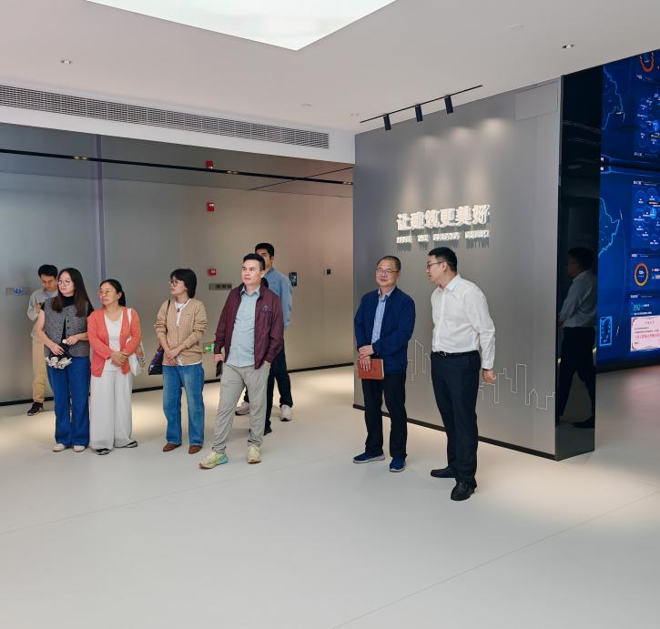 交流活动中,双方一同参观了浙里建·未来建造中心,中心展示了智慧施工和智慧运维的先进成果,为双方的交流提供了丰富的实例。在随后的座谈会中,杭州建研科技有限公司郑夏翊总经理详细的描绘了智慧建造的未来建造科技蓝图。从最初的探索尝试到如今构建起的智慧建造成熟体系,这一过程中积累的丰富经验无疑给建筑工程学院提供了极具价值的参考与借鉴。双方就土木工程的办学理念、方法及其面临的挑战与机遇展开的深入探讨,无疑为这一传统学科注入了新的活力与视角。通过这次富有成效的科技对接活动,大家达成了广泛共识:土木工程的未来在于其能否成功转型升级为智慧建造。