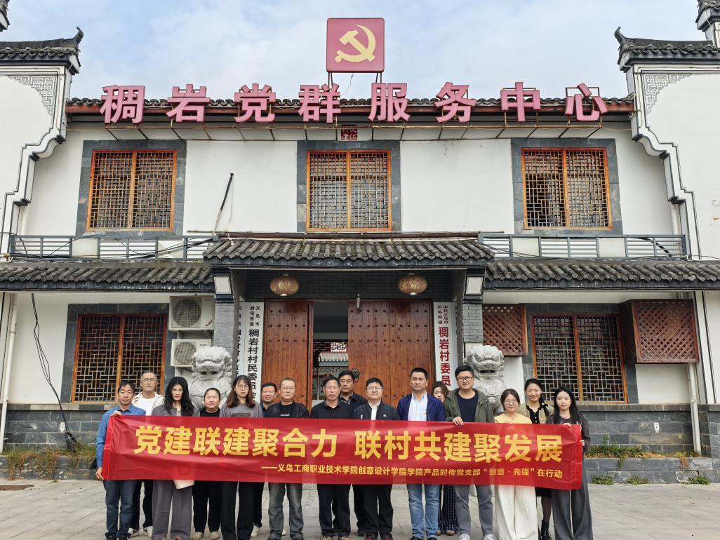 创意设计学院依托国家平台,发挥专业优势,集聚近100名人才,转化超千项成果,与联合稠岩村党委党建引领成效显著,双方已初步形成“党建+文化+产业”模式。