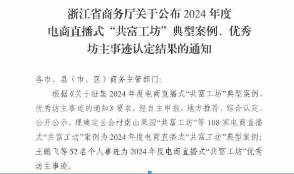近日,浙江省商务厅公布了2024年度全省电商直播式“共富工坊”典型案例,我校红创“共富工坊”成功入选。