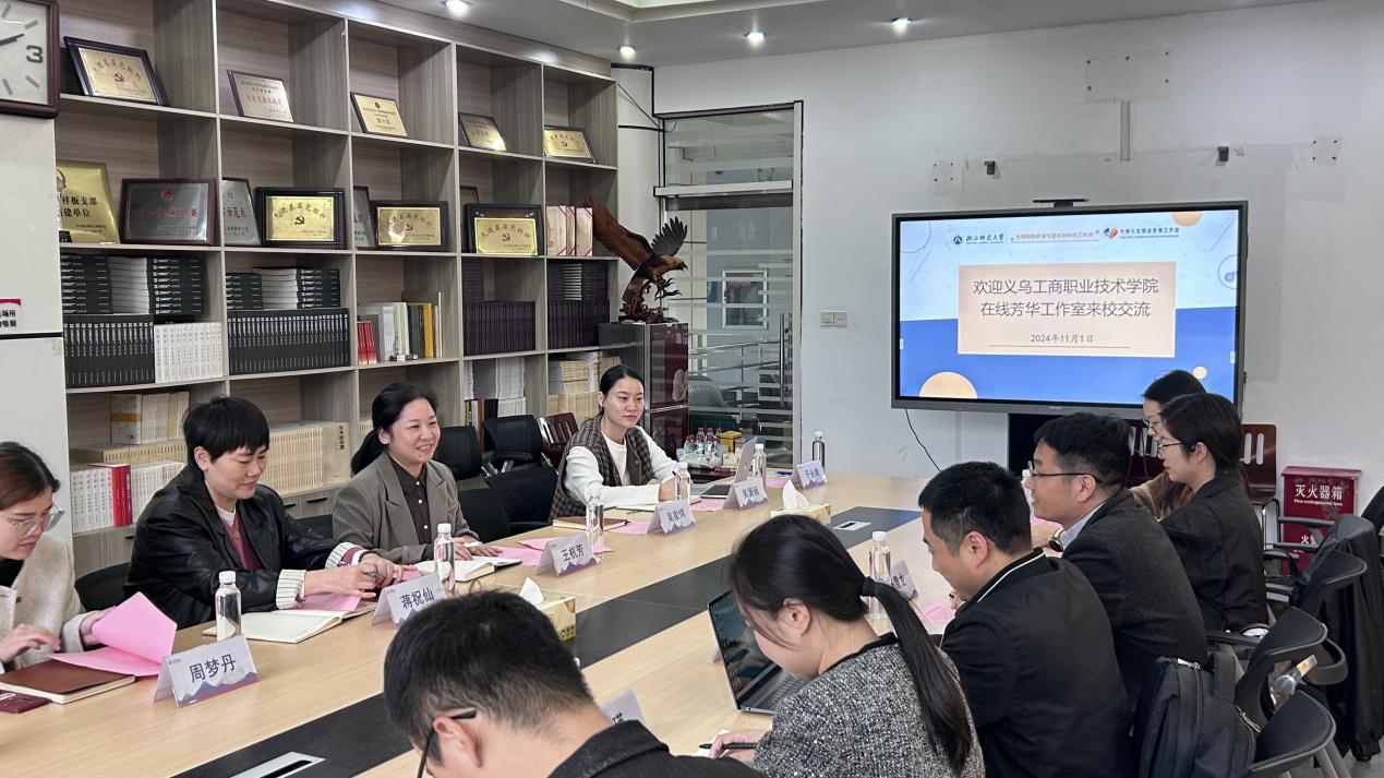 我校宣传部负责人、“在线芳华”主要成员代表工作室向浙江师范大学的热情接待表示感谢,并表示此次调研学习旨在学习借鉴“七彩人生”职业发展工作室的先进经验,为自身工作室的发展提供新的思路和动力。