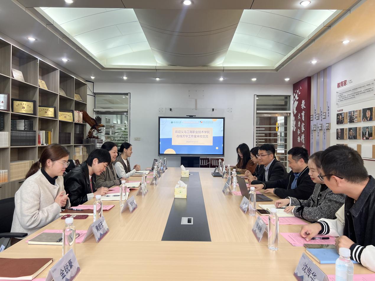 我校宣传部负责人、“在线芳华”主要成员代表工作室向浙江师范大学的热情接待表示感谢,并表示此次调研学习旨在学习借鉴“七彩人生”职业发展工作室的先进经验,为自身工作室的发展提供新的思路和动力。