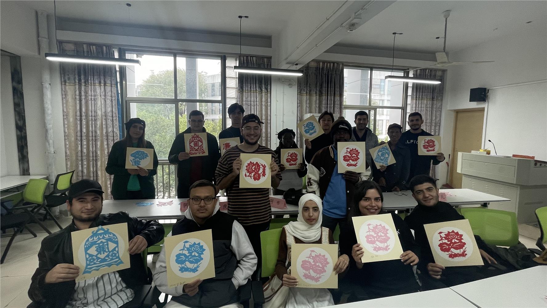 在剪纸艺术课程中,国际生们在非遗剪纸大师的指导下,学习了剪纸的基本技巧和方法。大师耐心地向学生们展示了如何折叠纸张、设计图案以及使用剪刀进行精细的剪切。在大师的悉心指导下,学生们逐渐掌握了剪纸的要领,并完成了包括莲花在内的各种图案的剪纸作品。这些作品不仅展现了剪纸艺术的独特魅力,也让学生们对中国传统手工艺有了更深刻的认识和体验。通过亲手创作,他们更加珍惜和尊重这一非物质文化遗产。