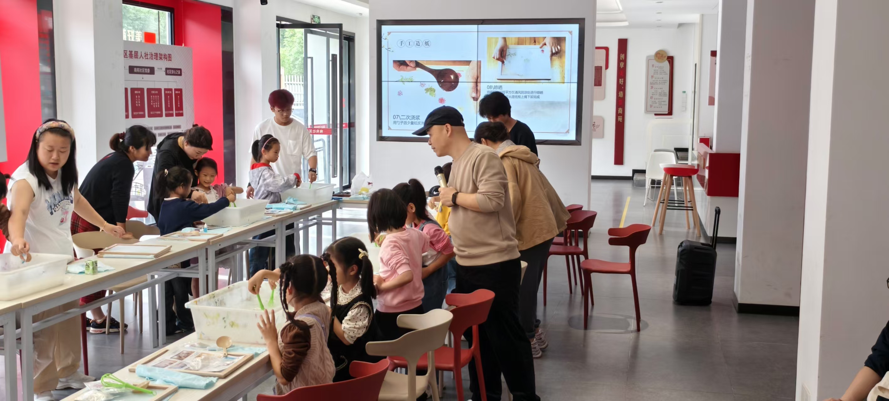 活动现场介绍手工造纸的历史背景和制作流程