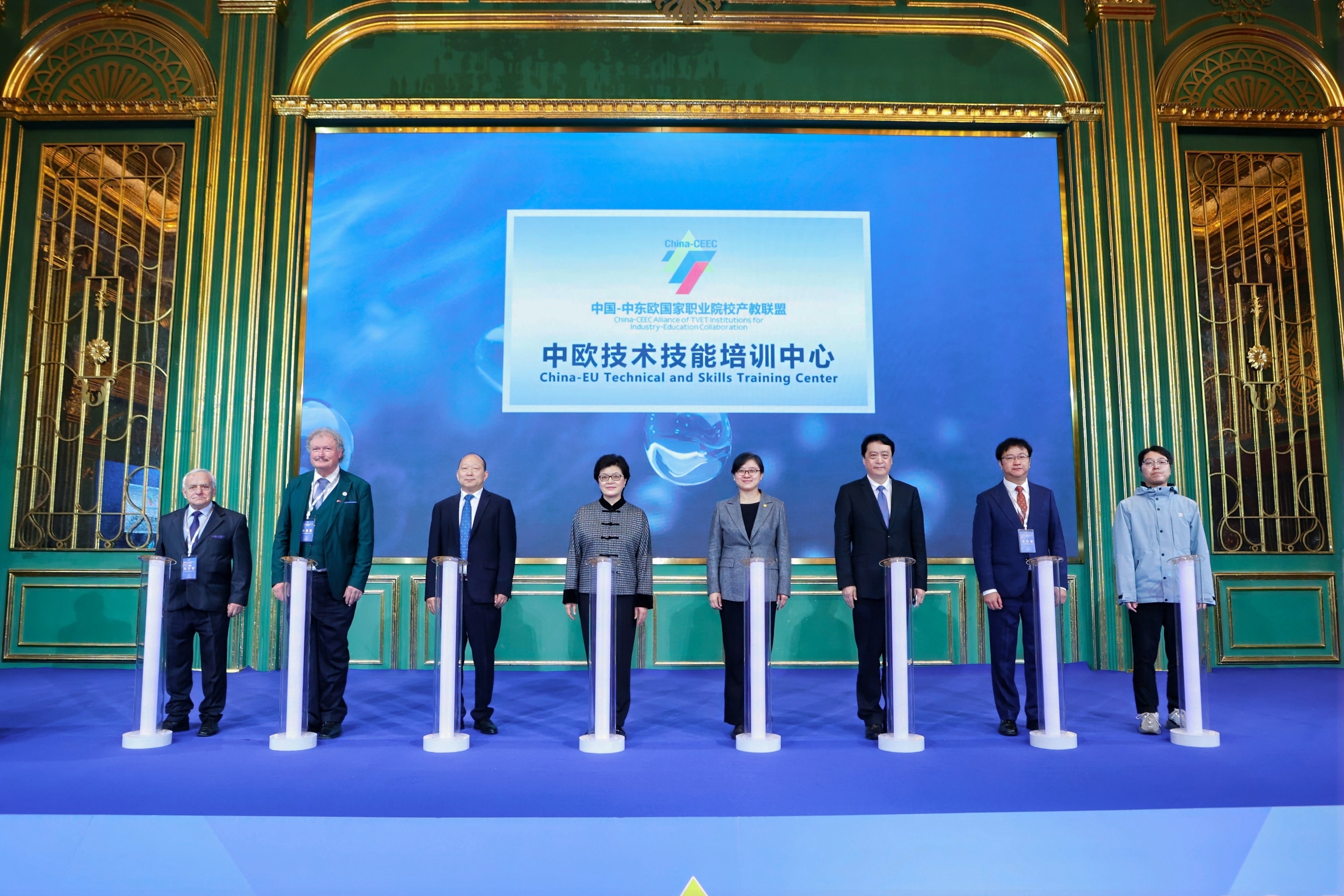 外交部中国—中东欧国家合作事务特别代表姜瑜大使到会,并为“中欧技术技能培训中心”揭牌。