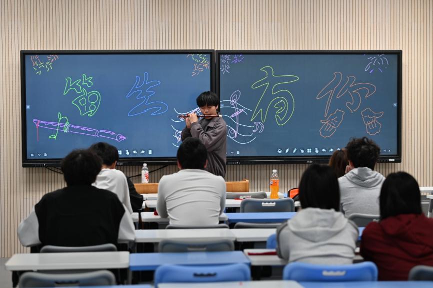 10月30日,“笛生有你”团队负责人在校园里开展笛子文化体验活动