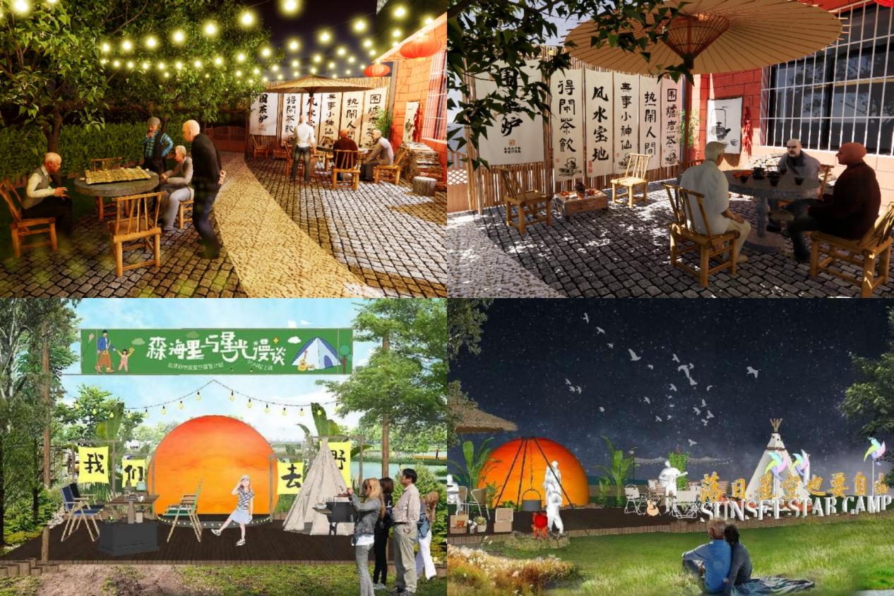 6月-11月期间,“城市微改造——微更新设计”团队绘制了鸡鸣山老年活动中心景观更新效果图和建德市山峰村江心岛露营地规划设计图