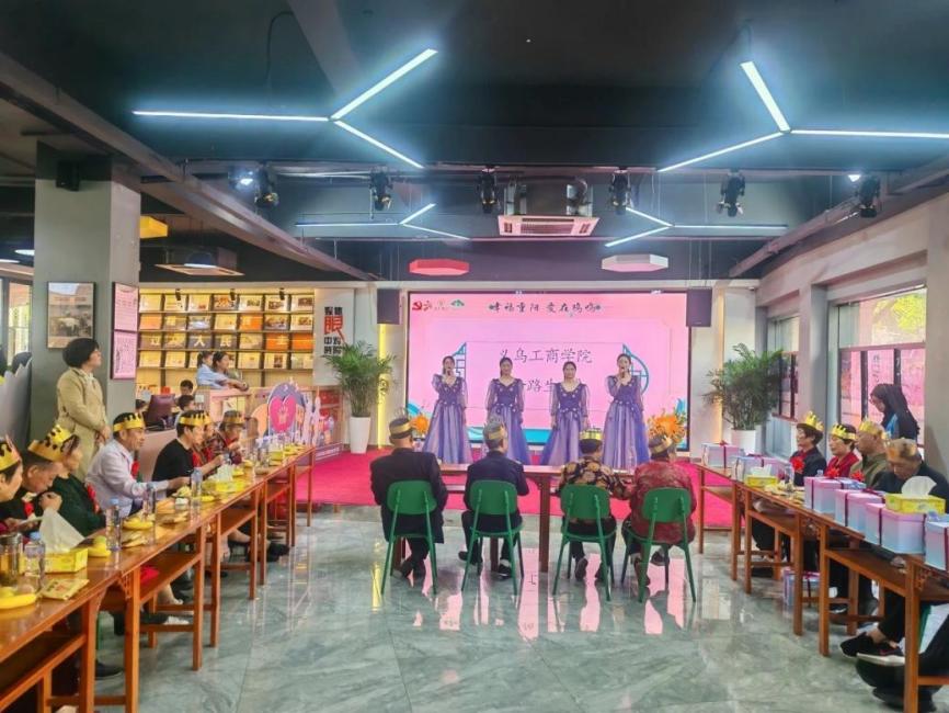 在重阳节这一天,建筑工程学院的“爱洒夕阳——尊老服务计划”团队与鸡鸣山社区携手举办了“幸福重阳爱在鸡鸣”长者生日会。活动内容丰富多样,包括健康义诊、健康讲座以及精彩的文艺表演。团队成员自编歌舞,倾情演绎,现场气氛热烈非凡,老人们深受感动,欢声笑语不断。此次活动不仅为老人们送去了节日的温暖,更弘扬了尊老爱老的传统美德,彰显了新时代老年人的精神风貌,为构建和谐社会贡献了青年力量。