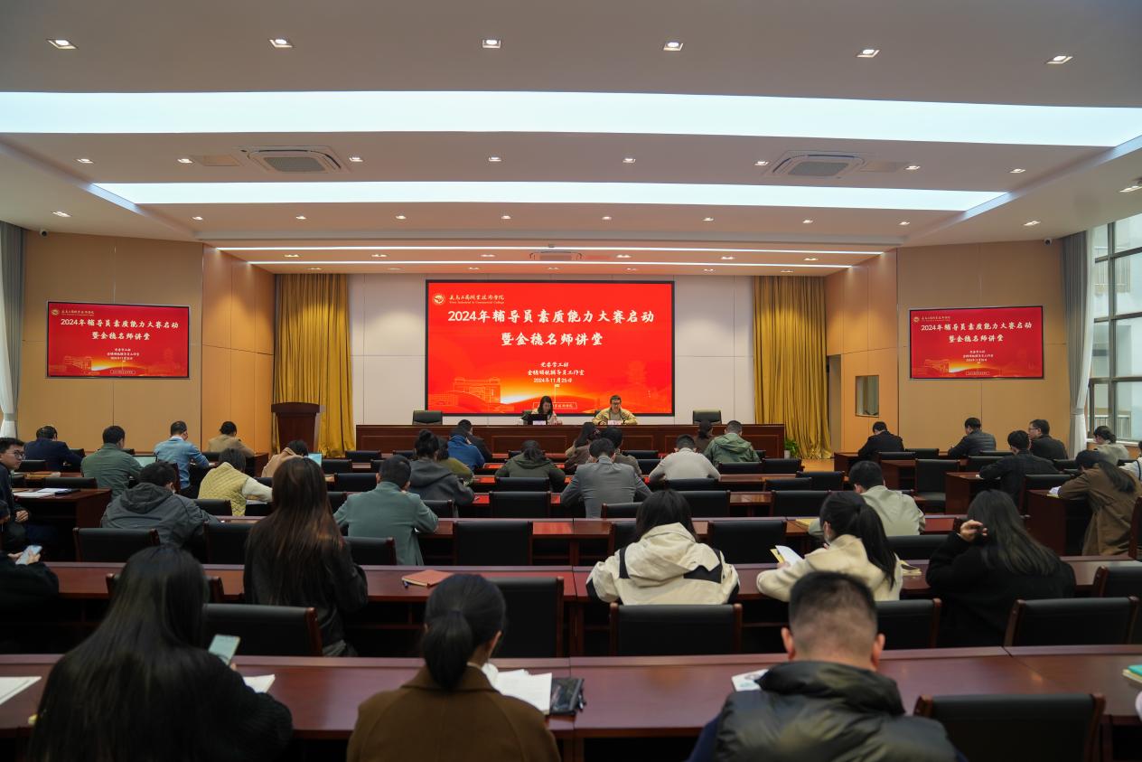 11月25日下午,2024年辅导员素质能力大赛启动仪式暨“金穗名师”讲堂在文美厅举行。党委委员、副院长徐美燕,学工部负责人,各学院党组织负责人,全体辅导员参加讲座。