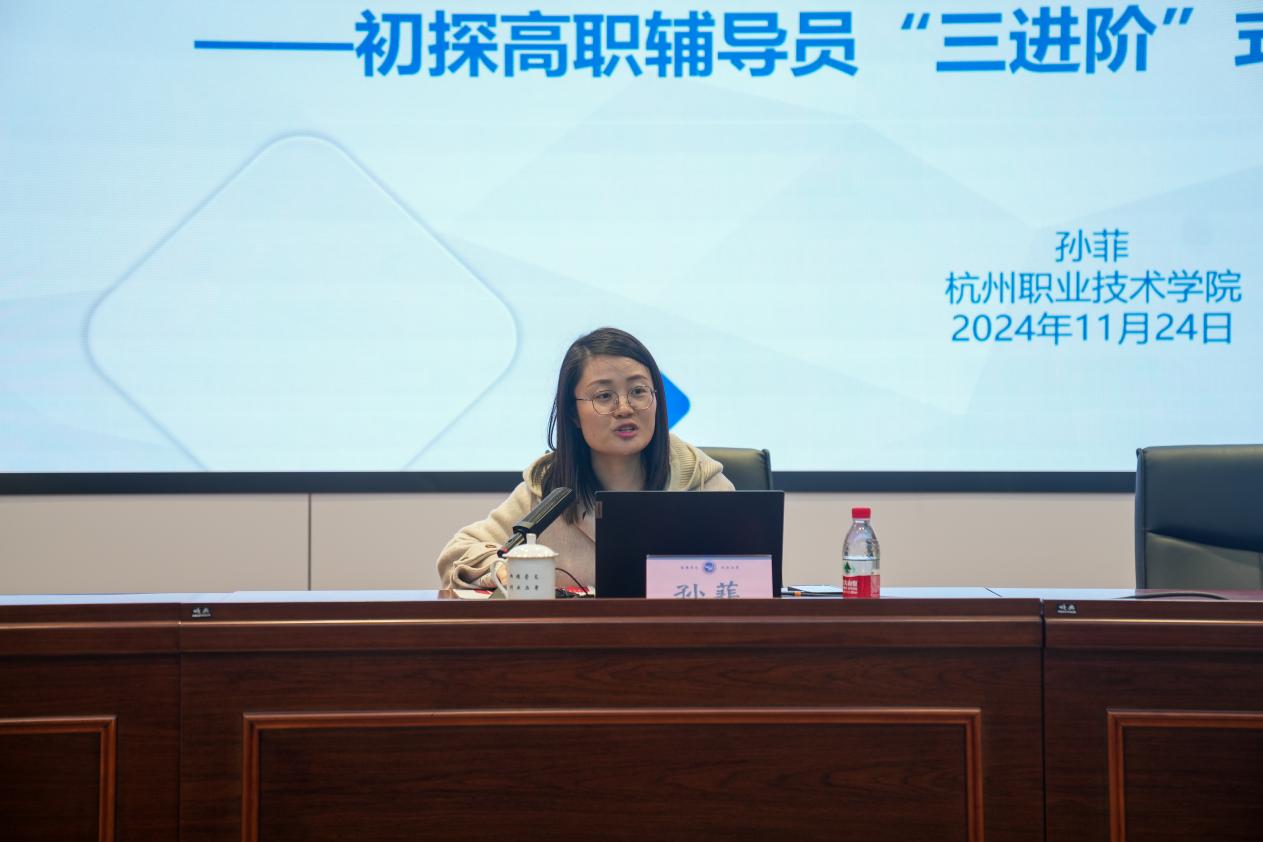 “金穗名师”讲堂此次特邀杭州职业技术学院生态健康学院学工办主任孙菲作题为《从“熵增状态”中找寻“熵减良方”——初探高职辅导员“三进阶”式成长路》的专题讲座。孙菲从辅导员“工作量大、定位不明”的熵增状态着手,探寻“以三导守三线促三展”熵减良方。她从工作的制度化、流程的规范化、管理的模块化、培训的常态化,引导年轻的辅导员可以在“工作有品牌、技能有证书、科研有成果、教学有金课”等方面挖掘自身亮点。最后,她提出,需要通过借势聚力寻资源打造辅导员工作室、思政精品项目、科研互助团队等。孙菲讲述的内容深耕辅导员本职工作,点滴均关乎辅导员成长与发展,对辅导员队伍开展下一步工作深有启发。