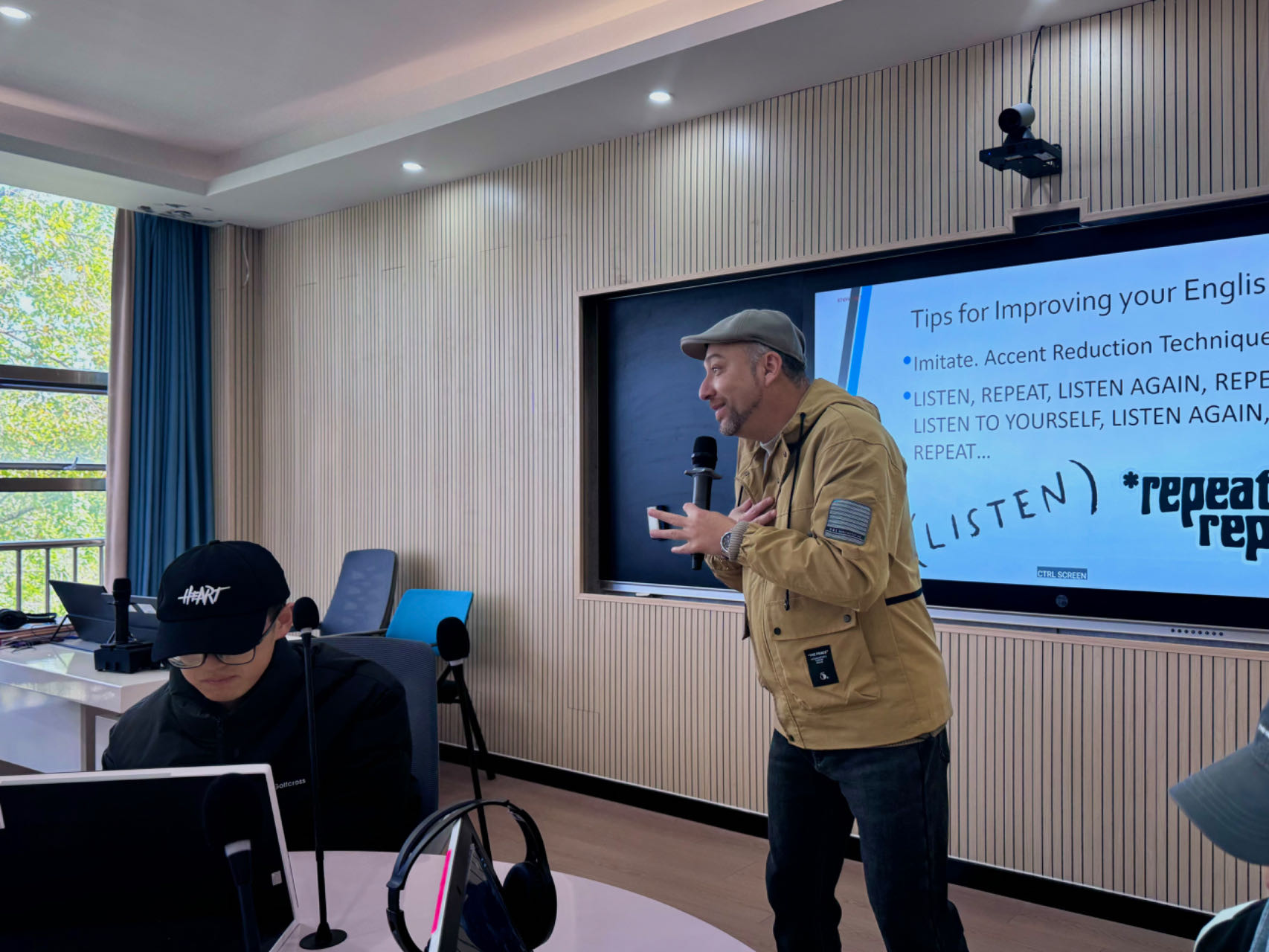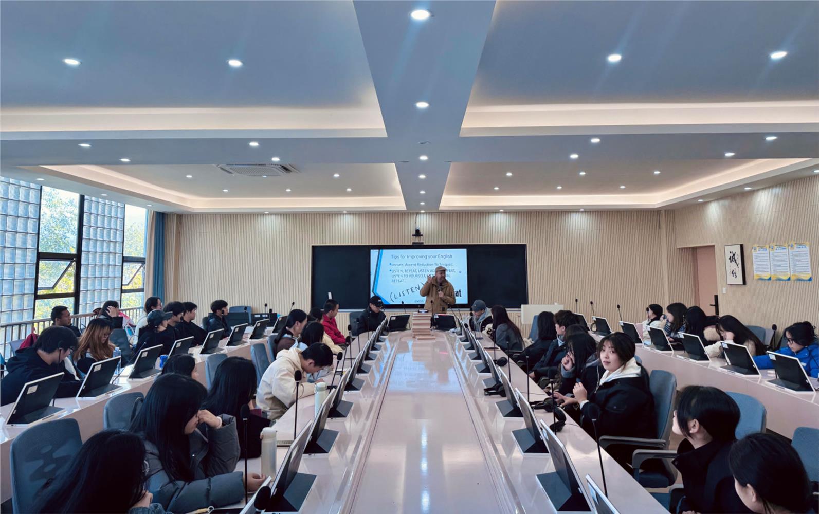 近日,外语外贸学院邀请外教Jhony Jaimes在望道楼407举办了一场以“提高英语口语能力的方法与实践”为主题的讲座,吸引了众多学生参与,现场气氛热烈。