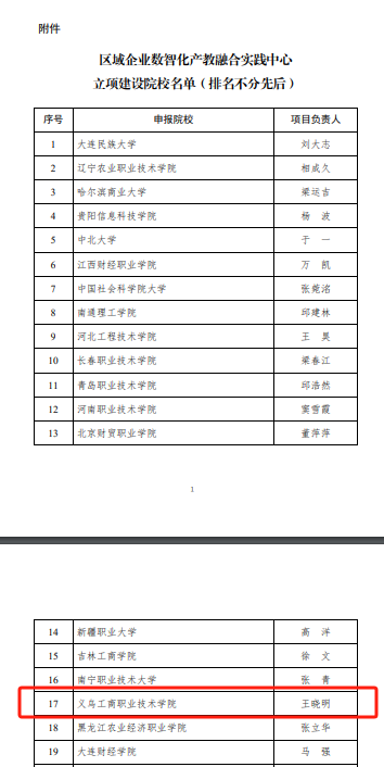 近日,全国工商联人才交流服务中心发布了《关于公布区域企业数智化产教融合实践中心立项建设院校名单的公告》,全国共有29所院校入选,我校经济管理学院区域企业数智化产教融合实践中心成功入选。