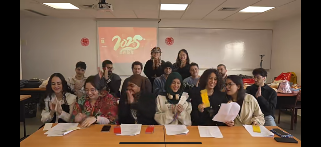 紧接着是“海外传音,岁序情牵”环节,摩洛哥义乌商学院的师生们也用中文向国内的师生们送上了他们的新年祝愿,表达了对中国文化的热爱与学习中文的喜悦。这一互动环节,不仅展现了学生们的语言学习成果,也拉近了中摩师生之间的距离。