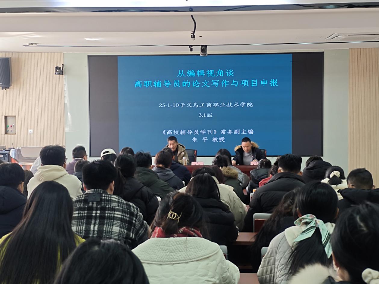 为提升学生工作队伍的科研能力及学术论文写作水平,更好担负起立德树人的职责使命,进一步推动辅导员队伍的职业化、专业化建设,1月10日下午,学校邀请《高校辅导员学刊》常务副主编、安徽师范大学教授朱平作题为《从编辑视角谈高职辅导员的论文写作与项目申报》的专题讲座。本次讲座由学生处负责人主持。
