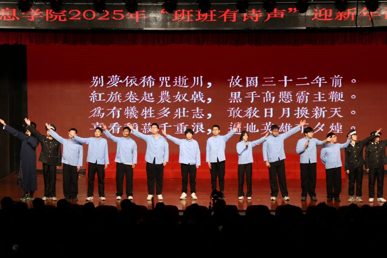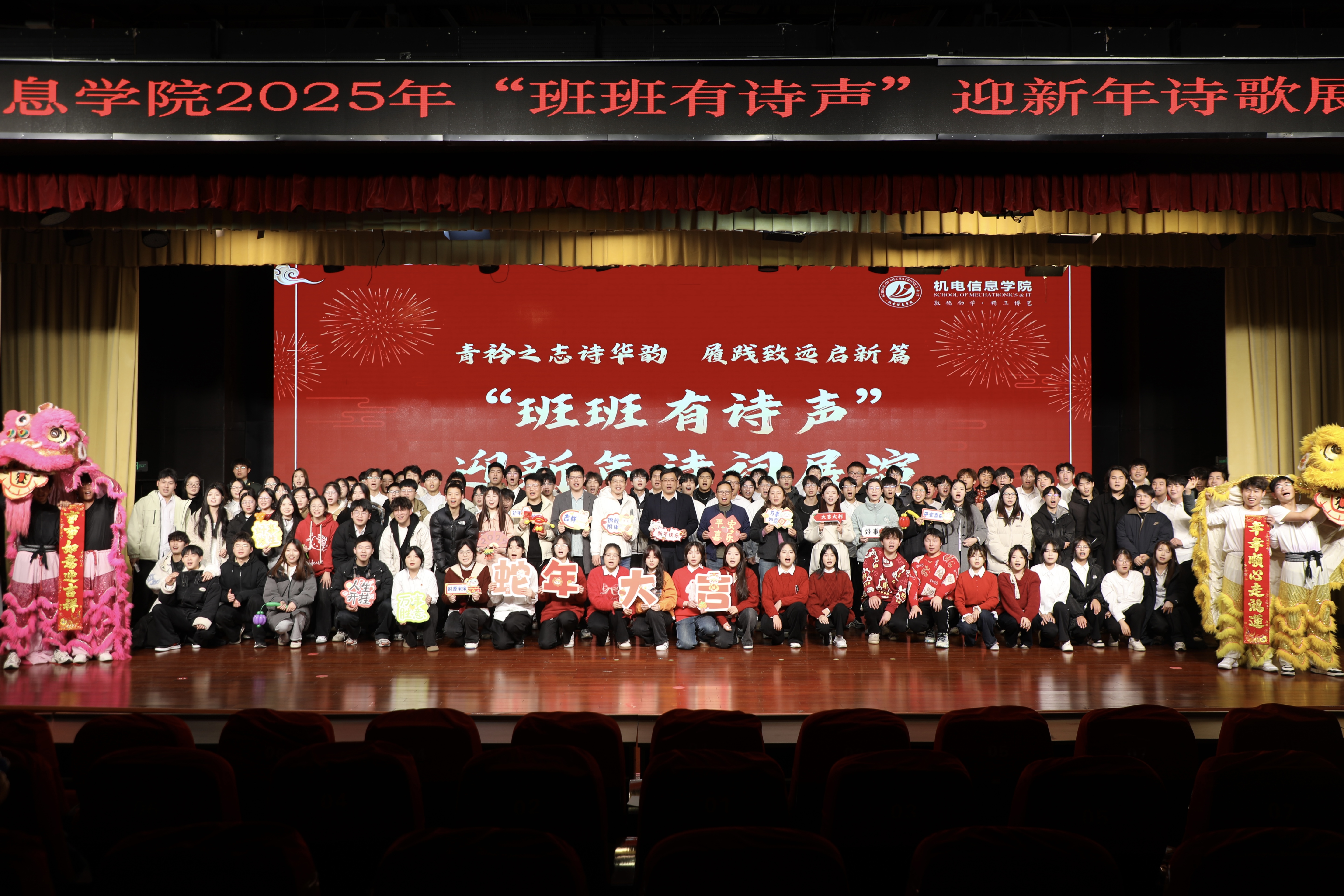 华章落幕,新岁序开。机电信息学院在丹溪文化厅圆满举行了“青衿之志诗华韵 履践致远启新篇”为主题的“班班有诗声”诗歌展演迎新年活动。校宣传部、学生处、团委、安保部负责人受邀参加,学院领导班子成员、班主任、辅导员?及各班级代表到场观看,师生欢聚一堂,共度美妙诗词之夜。本次活动由机电信息学院团委学生会承办,文亮教育和西培教育给予支持。
