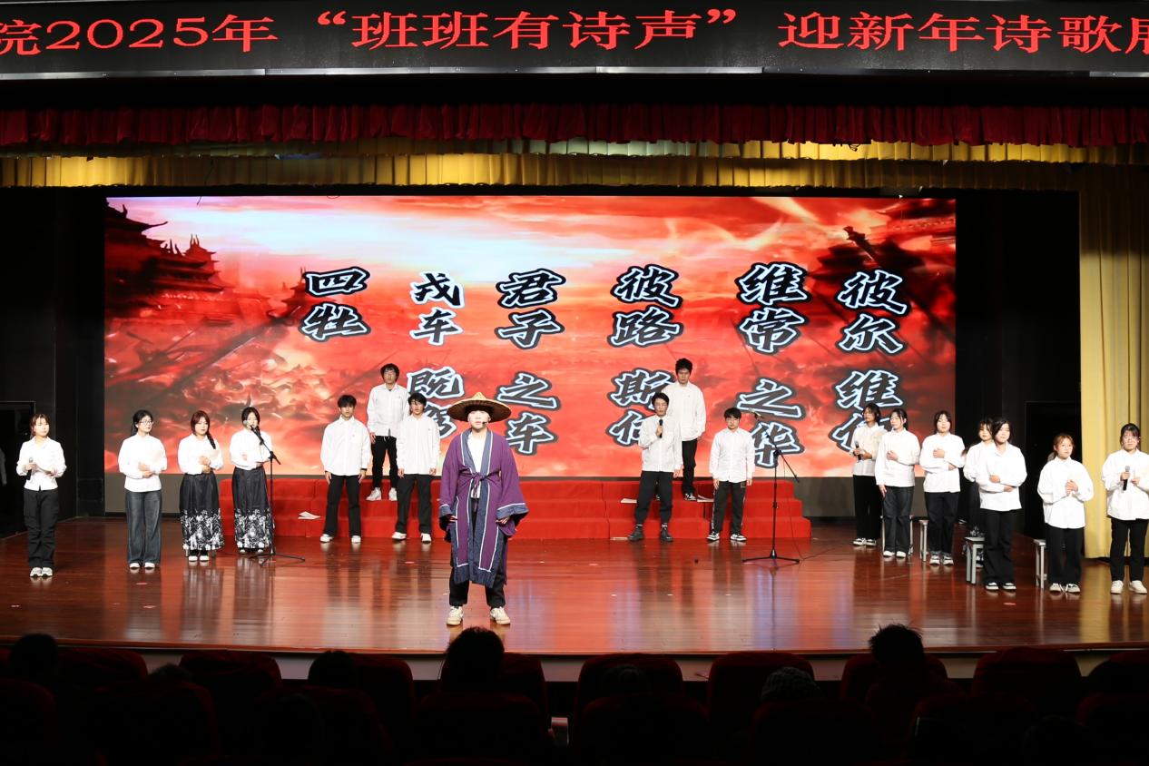 柔和的背景音乐配合着一帧帧美好的画面,活动的开场视频《2025,愿你 愿我》带大家回顾了2024年学生活动的感人瞬间,展望2025年机电学子创出更多精彩。视频播放结束后,学院党委负责人向大家介绍了“班班有诗声”品牌活动的内容与目的,鼓励同学们在学诗诵诗咏诗中,悟出向上向善的大道,明白为人为事的大德,知晓家国情怀的大义,学会爱己爱人的大爱。学院领导班子代表学院全体教职工向到场嘉宾和学生送上新年祝福。在观众们热烈的掌声和欢呼声中,活动正式拉开了帷幕。
