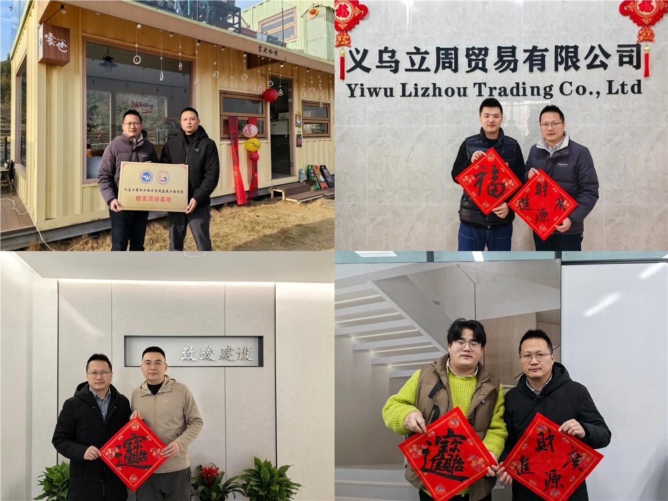 此次走访的校友皆是行业内的佼佼者,包括浙江致竣建设工程有限公司总经理王超、义乌立周贸易有限公司董事长张中磊、雾也农场负责人周坚、东阳市御虹电子商务有限公司董事长杜俊杰以及温州裕涵文具有限公司董事长陈欣涵。走访过程中,校友们深情回顾了在母校求学的难忘岁月,字里行间满溢着对母校辛勤培育的感恩之情。同时他们也结合自身丰富的创业历程与工作经验,就学院的人才培养模式、学科建设方向、校企合作路径等关键议题展开深入探讨,为学院的长远发展建言献策。