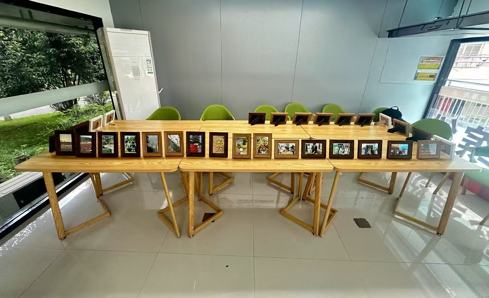 活动采取“理论+实践”的沉浸式教学模式。项目负责人以“手机摄影的叙事美学”为主题,结合社区生活场景,系统讲解构图法则、光影运用及后期处理技巧。在实践环节,学员们分组前往社区各个特色空间进行拍摄创作,项目负责人指导同学们运用广角镜头展现公共空间的几何美感,对学员作品进行“一对一”分析。部分优秀作品在“麦穗会客厅”进行展览,后续团队也会将摄影作品转化为触手可及的文创、浸润日常的墙面文化。