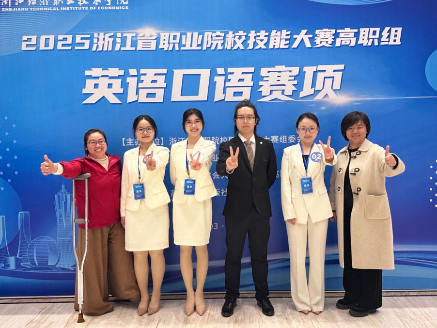 3月29日,由浙江省教育厅主办、浙江经济职业技术学院承办的2025年浙江省职业院校技能大赛高职组英语口语赛项正式落下帷幕。来自全省50所高职院校(含本科层次职业大学)的78支代表队伍参赛。我校外语外贸学院陈和平、伍忠丽老师指导的汪逸阳、周炜茜、曹萌、朱子墨团队和马克思主义学院蒋琳珍、陈晓霞老师指导的陈诺、王晓颖、涂钧瀚、王齐齐团队荣获银奖两项。